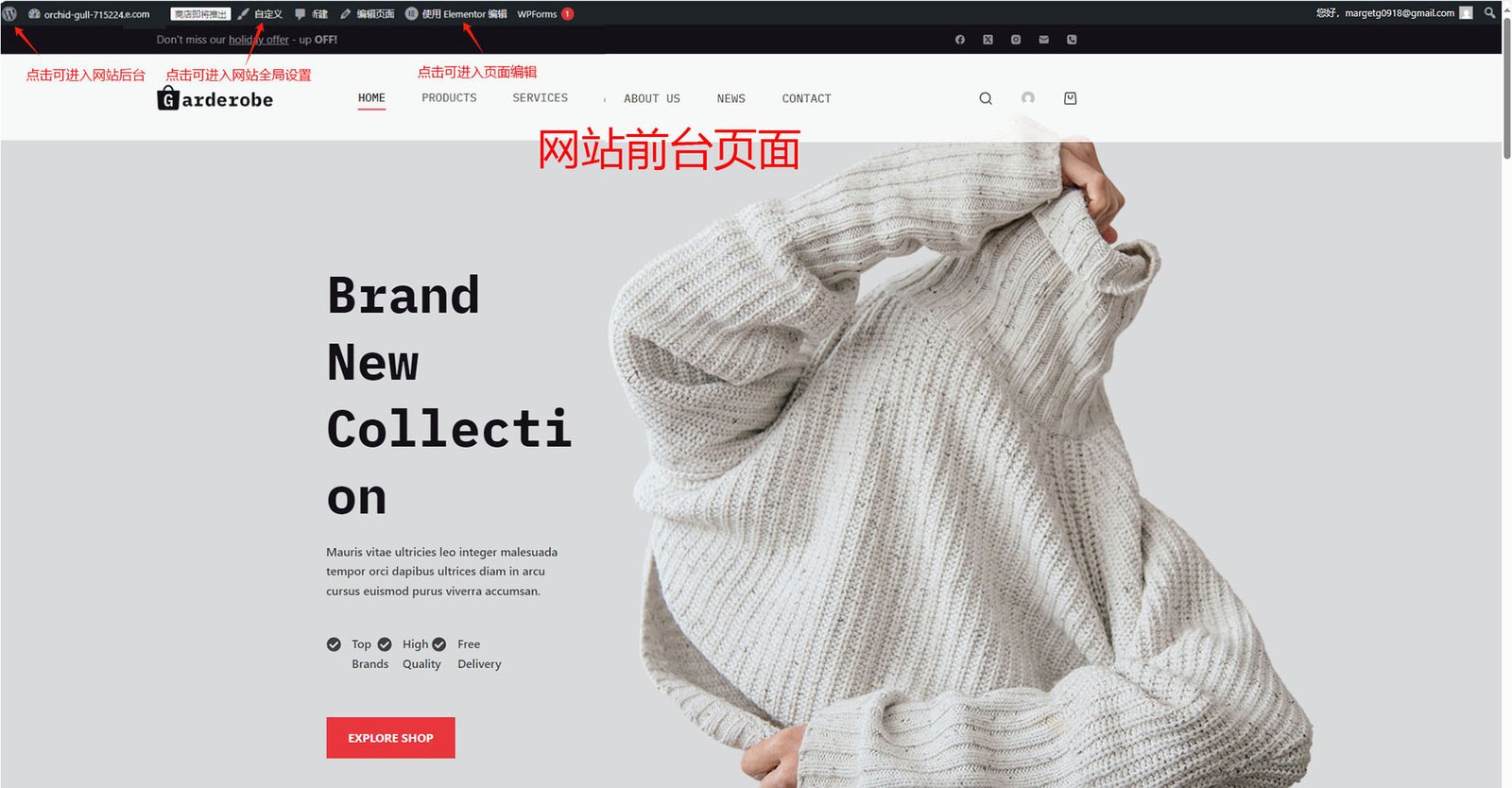 因为后期网站更新文章,发布新产品,都是外贸公司自己来做,建议抽时间学习下Wordpress基础教程,很容易上手!WordPress有三个界面,分别是网站后台页面、网站前台页面、Elementor编辑页面。搞懂这三个页面的功能后,基本就能轻松的对网站进行装修和更新了! WordPress设置网站布局、字体、颜色① WordPress设置网站布局、字体、颜色② WordPress使用Elementor编辑页面 WordPress上传产品 WordPress设置导航菜单、分类